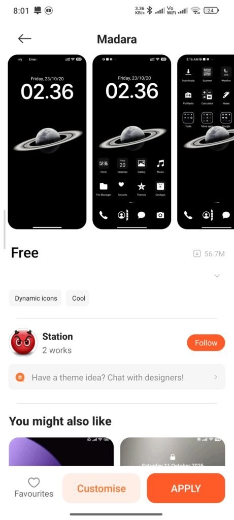 Kalau download selesai, biasanya akan muncul tombol dengan tulisan Apply. Anda tinggal menekannya, dan sistem akan bekerja cepat untuk mengganti sejumlah elemen seperti lockscreen, wallpaper, control center, status bar, dan icon pack (ikon aplikasi).